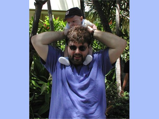 Ewan gets his first ride on Dad's shoulders