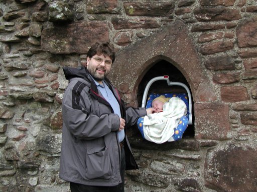 Dad finds a baby alcove at Beauly Abbey
